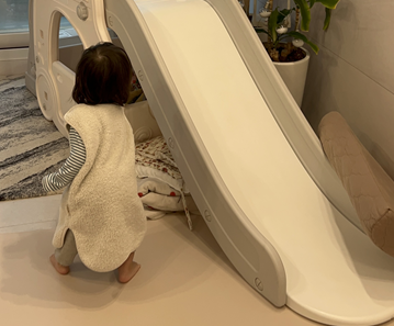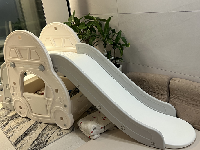 미끄럼틀이라기보다 큰 장난감 같은 느낌이라 집 인테리어와도 은근히 잘 어울립니다.